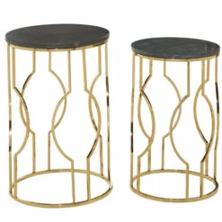 Wholesale ✨ Studio 350 Gold Marble Contemporary Accent Table (Set Of 2) – 16 X 16 X 24Round 🤩