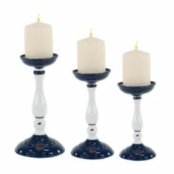 New ❤️ Studio 350 White Metal Farmhouse Candle Holder Set Of 3 12 X 5 X 5 – S/3 8″, 10″, 12″H 🥰