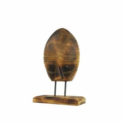 New ✔️ Studio 350 Carved Tribal Mask Reclaimed Wood Sculpture On Teak Wood Stand 🛒