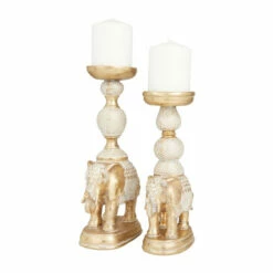 New ๐คฉ Studio 350 Gold Polystone Traditional Candle Holders (Set Of 2) – 7 X 4 X 13 ๐งจ