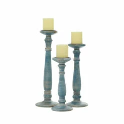 Budget 🎁 Studio 350 Blue Wood Country Candle Holder (Set Of 3) – S/3 18″, 15″, 12″H 🥰