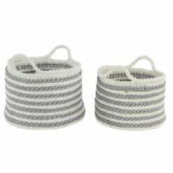 Cheap ✨ Studio 350 Large Round Striped Gray Mesh & White Cotton Rope Storage Baskets Set Of 2 🎉