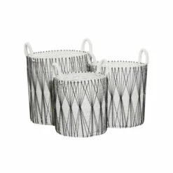Cheapest 🛒 Studio 350 White Polypropylene Bohemian Storage Basket (Set Of 3) – S/3 21″, 21″, 19″H ❤️