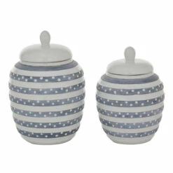 Promo ๐ฅ Studio 350 White Ceramic Coastal Decorative Jar (Set Of 2) – S/2 8.5″, 9.75″H โ๏ธ