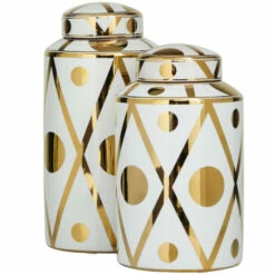 Promo โญ Studio 350 Ceramic Modern Abstract Decorative Jars (Set Of 2) Silver-white โ๏ธ