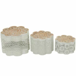 Cheap 🧨 Studio 350 White Metal Traditional Quatrefoil Decorative Jars (Set Of 3) – S/3 8″, 7″, 6″W 🔥