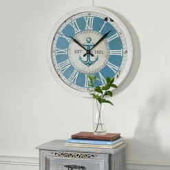 Best deal 🎉 Studio 350 White Metal Coastal Wall Clock Vintage 2 X 24 X 24 – 24 X 24 X 2Round ❤️