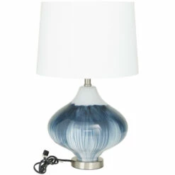 Flash Sale 😀 Studio 350 Blue Glass Modern Table Lamp – 14 X 14 X 24 ⭐