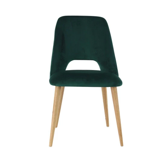 Add some elegant accent to your dining room with this cushioned chair. Crafted from high-quality polyester, pine wood, veneer, and rubberwood materials, this stunning dining chair features a green-finished fabric-clad seat and backrest designed with a hole accent at the center, supported by four light brown legs. Its minimalist look perfectly complements modern and contemporary-themed settings. Get this stunning dining chair now at a price that won’t hurt your pocket!