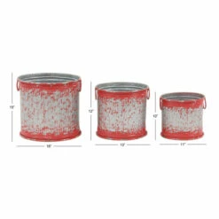 Upgrade the vintage look of your home with this set of cylindrical planters from Studio 350. Boasting a 100% iron construction, this set features three cylindrical pots designed with vertical ribbing all in distressed red and gray finishes. The pots wide openings and deep setting allows you to display various types of plants while the distressed finishing lends a rustic charm to your space. Serving both decorative and functional purposes, these planters are the perfect finishing touch to your backyard garden or lawn. Get these adorable planters now at a price that will suit your budget!