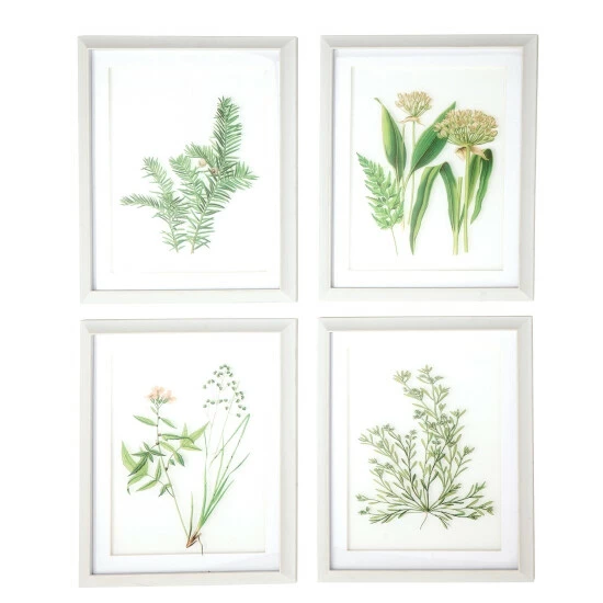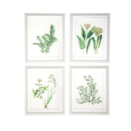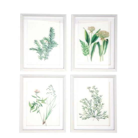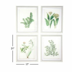 Bring the beauty of nature into your rooms with this set of framed plant wall art. It features four white-finished, rectangular wooden frames designed with various plant illustrations in green, beige and brown finishes that add a calming aura to your space. Each painting can be an excellent display on its own or when hung together. Get these lovely framed wall art today and see how they can freshen up your home interior.