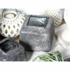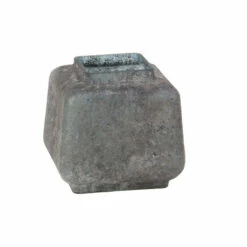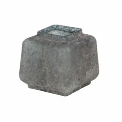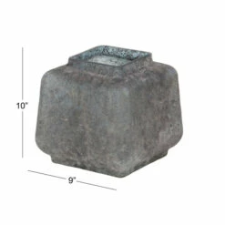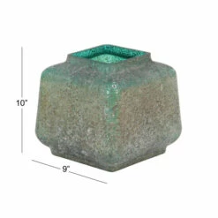 - 10″ x 9″ Rustic glass vase, features a beveled square glass body with an inward square base, features a spouted vase mouth, features a textured gray exterior finish, features a green interior finish, made from 100% glass