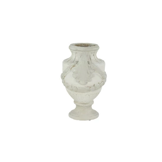 - This antique style vase is hand-made into an urn shape with acanthus designs and stone gray-colored decorative rope around the entire body