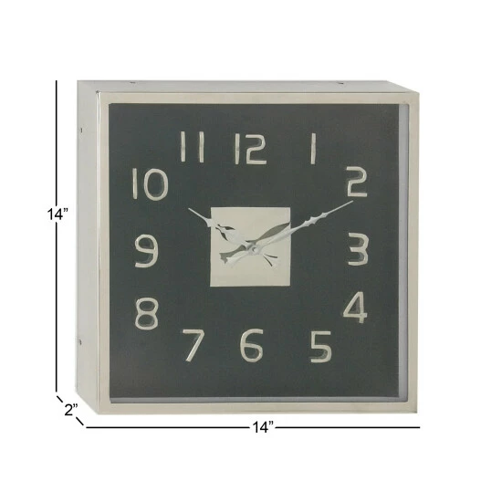 Add a touch of shine to your black decor with this silver-finished wall clock. The stainless steel frame ensures durability, and protects from rust and scratches. Silver numerals contrast the black backdrop for an eye-catching display.