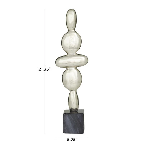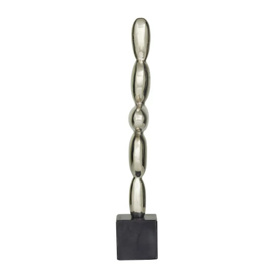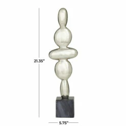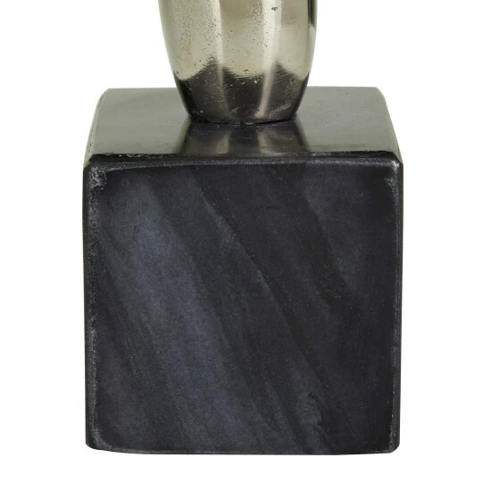 - Metal abstract sculpture carries a metallic silver, gold, or black finish, while the stand is swirled black, white, or grey marble
