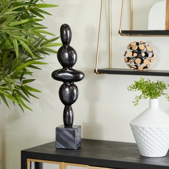 This abstract sculpture home decor is best appreciated on a round side table in a contemporary-themed living room or home office. Create a balance surface space and added dimensions with this beautifully crafted sculpture. An artistic display to showcase your personality and enhance the look of any open table top space. Designed with rubber stoppers at the base that prevent scratching furniture and table tops, as well as sliding around. This item comes shipped in one carton. Suitable for indoor use only. Marble is a product of nature and no two pieces are exactly alike, it is prone to variations in color and/or patterns in the material that adds to the beauty and charm of the piece. Made in India. Contemporary.