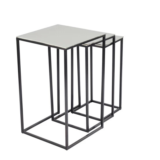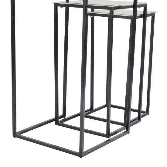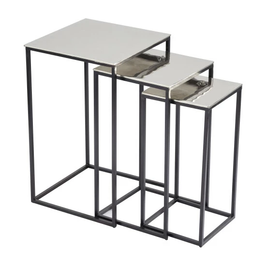 - These nesting tables highlight a metallic silver / gold textured tops with ebony black leg base stands