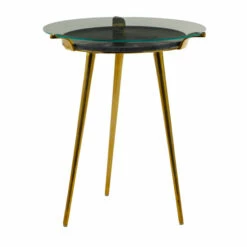 - Gold side table showcases a sturdy construction of tempered glass, marble, and aluminum