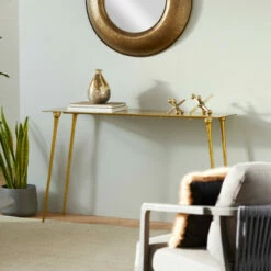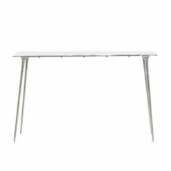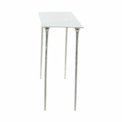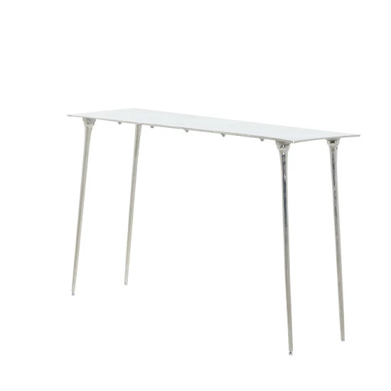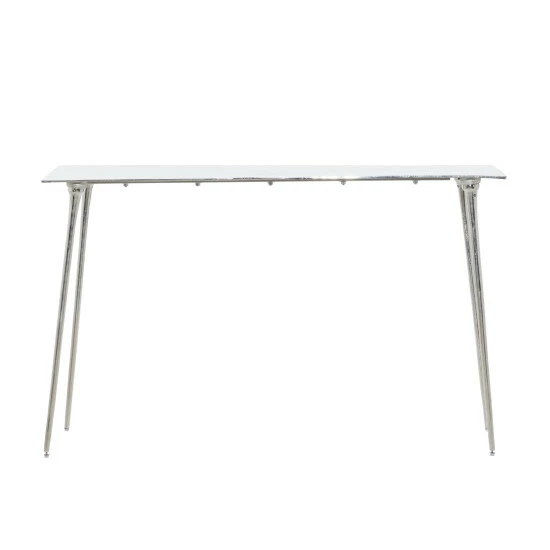 - This tall aluminum console table comes in an elegant silver finish that goes well with glam-inspired interior design