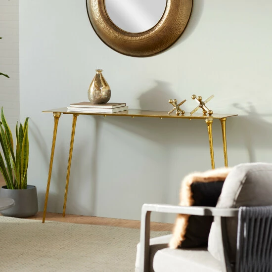 This rectangular accent table is designed to be attractive and stylish in any glam-styled space. Useful and elegant, console tables are more than just a place to throw your mail. Make an inviting entryway for your guests as they enter your humble abode. Designed with rubber stoppers at the base that prevent scratching as well as sliding around. Suitable for indoor use only. Maximum weight limit is 75 lbs. This item ships in one carton. Glam theme.