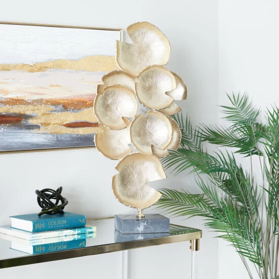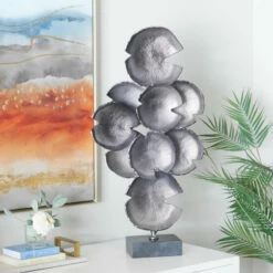 An aluminum sculpture that elevates your home style with its unique abstract design with detailed characteristics that will grab one’s attention. This will elevate any naturalistic style of home and bring some dimensions to your surface space. An artistic display to showcase your personality and enhance the look of any open table top. This item comes shipped in one carton. Suitable for indoor use. Made in India. Glam Style.