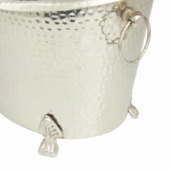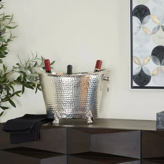 Entertain in style or use as a storage display to keep your bottled beverages cool and protected on any surface with this silver wine bucket Display your wine bottles with style and make everyone thirsty with envy. Looks stylish in your living room or kitchen as a way to display and keep your bottled beverage protected. This item comes shipped in one carton. Made in India. Traditional Style. Suitable for indoor use only.