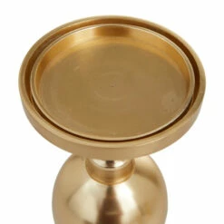 - This chic gold /silver pillar candle holder set showcases a rounded center body design with a wide bell shaped candle plate and bottom base