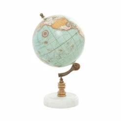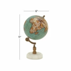 Explore every corner of our beautiful planet by adding this globe to your home office or study. This eye-catching decor piece has a bright, contemporary design and 6″ width. The globe’s highly detailed surface offers a great way to learn about geography. Bodies of water are depicted in a lively aquamarine color, while landmasses are tan and orange. The decor rests on a round white marble base for stability. This item ships in 1 carton. This world globe measures 7″ diameter. Suitable for indoor use only. Marble is a product of nature and no two pieces are exactly alike, it is prone to variations in color and/or patterns in the material that adds to the beauty and charm of the piece. Made in India. Contemporary design.