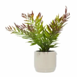 This artificial plant in pot adds a touch of naturalistic greenery and blooming spring to indoor settings. Use it as an accent piece in the living room or by the hallway console dresser. Make a statement with this unique decor on mantle, console table or in any living space. Add some greenery to your decor with no keep up effort with these artificial foliage. This item comes shipped in one carton. This artificial plant for home decor is made of silk comes in a ceramic planter with a 4. 06″ depth. Suitable for indoor use only. Contemporary theme.