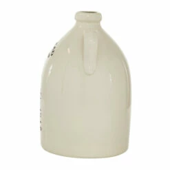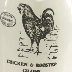 Add charming Farmhouse style to your tabletops with this large ceramic jug. In true Farmhouse fashion, this decorative jar features the serif font script “HOMESTEAD Poultry Feed since 1906” with a rooster illustration and “Quality Guaranteed” stamp with “Chicken and Rooster Grains” at the bottom. Display as Farmhouse accent decor or put a single stem botanical in the top. This item ships in one carton. Suitable for indoor use only. Jug vase with narrow rim opening. Features a vintage-stamped print with “HOMESTEAD POULTRY FEED SINCE 1905” text and a chicken illustration. Farmhouse-themed style.