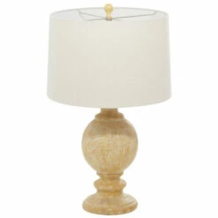 Brighten up any room to create a warming atmosphere for you and your guests with this chic accent lamp. Make a statement with this unique lamp on mantle, console table or in any living space. This eye catching lamp makes a playful addition to your surface space and beautifully illuminate its surrounding area. Requires 1 Standard Type A bulb, not included. Suitable for indoor use only. Easy twist on/off switch under the bulb. Coastal theme. This item comes shipped in one carton.. Features a coastal inspired design for that laid back coastal vibe. This table lamp is made of polystone with a linen shade for natural look. Light beige lamp with white accents for a stone look and a white shade. Accent lamp features neutral soft tones that will work with any color palette or pattern. Table lamp measures 7.5″L x 7.5″W x 28.25″H and weighs 6 lbs
