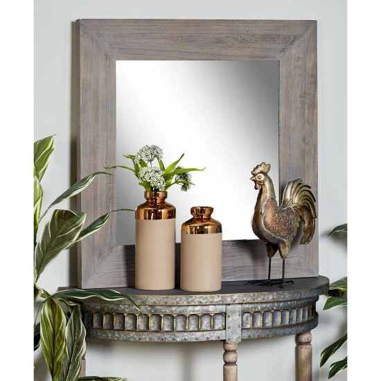- It highlights a natural beige wood finish with grey galvanized metal finish