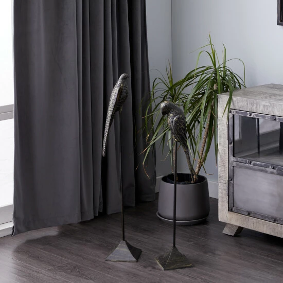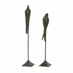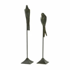 Display these in your glam style home for some awesome nature vibes. This item ships in 1 carton. Suitable for indoor use only. Made in India. Aluminum bird sculptures come as a set of 2.. Glam style.