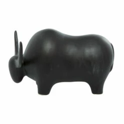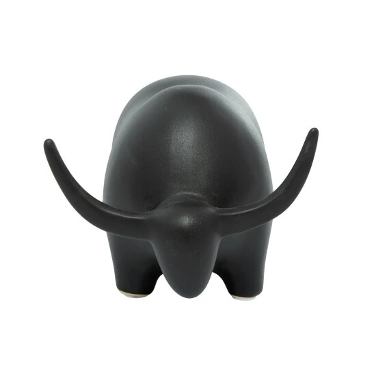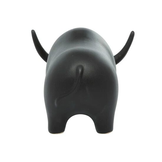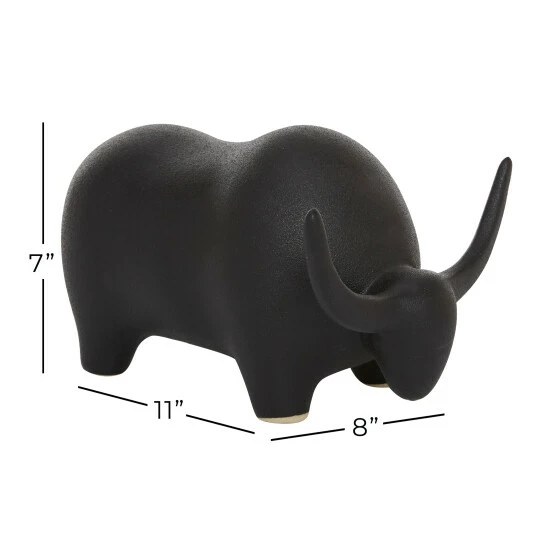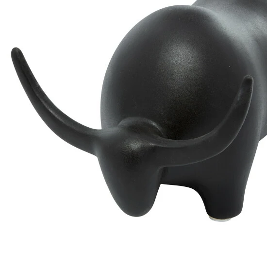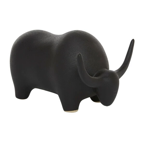 Whether you’re decorating a modern southwestern style home or want some strong energy in your space, this black ceramic bull sculpture will be a great finishing touch! The rounded body is smooth with lots of curves for a soft, minimal, modern look while still defining its features. The soft, matte black finish adds contemporary style while also making tis table decor pop against white or other light-colored walls. Designed with black rubber stoppers at the base that prevent scratching furniture and table tops, as well as sliding around. This item is shipped in one carton. Suitable for indoor use only. Contemporary design.
