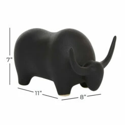 - Sturdy and solid featuring black ceramic bull table decor
