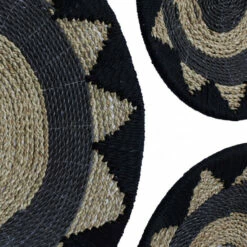This round black and natural-tinted and patterned woven decor plates bring your farmhouse-styled walls closer to nature. Made from hemp, this wall decor set flaunts intricately woven black and natural-tinted ropes that results in a bold sunflower patterns. Hang as a standalone display or as a set of 3, these wall decor plates are sure to give a warm and rustic personality to your farmhouse or rustic themed home walls. This item comes shipped in one carton. Supported with ring backing hardware for easy wall setup. Suitable for indoor use only. Display as standalone or in set of 3 wall Decor. Rustic Design. Due to the handmade nature of this item, no two will be alike, there will be slight differences in shape, size, and color.