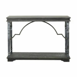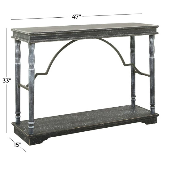 Bring a finishing touch to your home with an inviting appeal with this console table. A sturdy and long lasting construction for a years of enjoyment. Classic in design with vintage color, place this item in your entryway, living room or home office for chic storage space. This item ships in 1 carton. Suitable for indoor use only. Maximum weight limit is 100 lbs.. This console table features 2 rectangular storage shelves. Farmhouse-themed style.