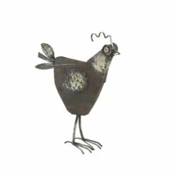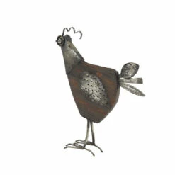 Elevate a farmhouse style home with this sculpture. The stylized rooster sculpture features head, wings, tail, and feet made from metal in a galvanized gray finish, and a black and brown Fir wood body with woodgrains. Rustic details on the wings, face, body, and tail add to the figure’s charm. Place on console tables or living room floors to highlight the old-world charm of rustic and farmhouse-themed interiors. Use this decor piece to add some personality to a farmhouse-style entryway, bedroom, or kitchen Wipe clean with a dry cloth. Suitable for indoor and outdoor use. Farmhouse-themed style. This item comes shipped in one carton.