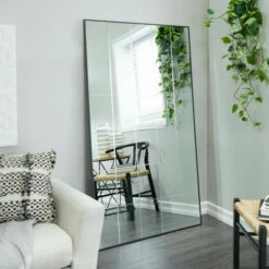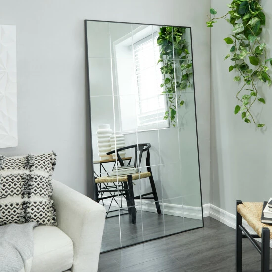 - Matte black and reflective finish highlights the frame design of this wall mirror