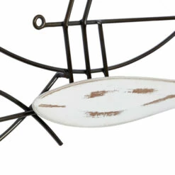 - Feature fish family wall decor made of a solid metal frame and wood