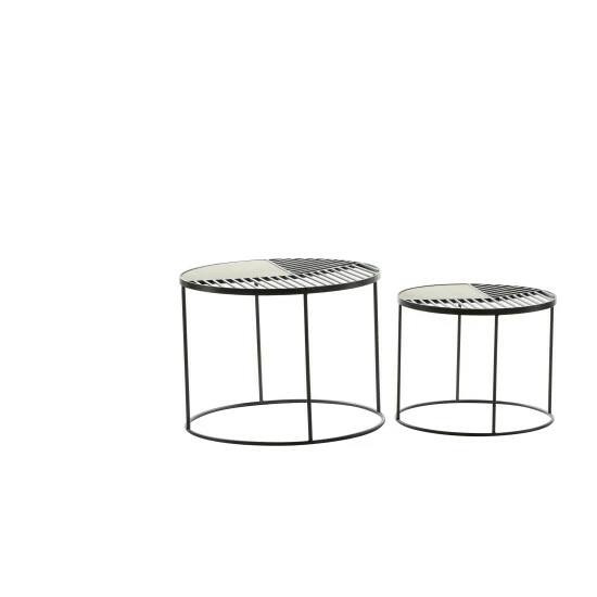 Great addition to homes with industrial, modern, and contemporary interiors. Use it as an accent piece in the living room, library, bedroom, waiting areas, or hallways of you home. A compact friendly table providing you with additional storage space any where in your home. This item comes shipped in one carton. Suitable for indoor use only. This set includes 2 round tables. Contemporary design. Maximum weight limit is 100 lbs