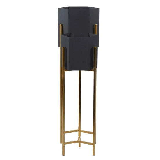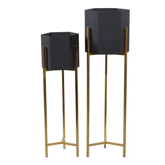 - These hexagonal metal planters stand on Y-shaped bases
