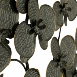 Create an excellent focal point on your walls paired with some cute accent tables, and level up your home with this amazing wall Decor. It makes a great centerpiece over your sofa or in your dining room. Give you neutral-painted walls a touch of nature with this enlarged orchid metalwork. Wipe clean with a dry cloth. Contemporary design. Easy to hang with nail or screw via ring hardware on the back. This item comes shipped in one carton.. Ideal decor that works best in contemporary themed homes. Get this hammered steel-inspired wall decor crafted with 100% metal into an orchid wall art. It features a charcoal black, gold-tipped finish. This wall decor is designed as a 3D orchid wall art. It measures 31″L x 3″W x 46″H and weighs 4 lbs