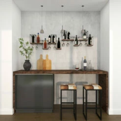 - Wall wine shelf measures 36″L x 6″W x 16″H and weighs 2.29 lbs