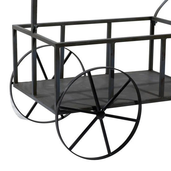 - This splendid cart plantstand feature a distressed gray and polished black iron finish