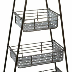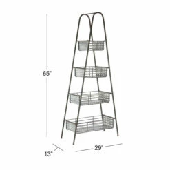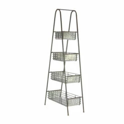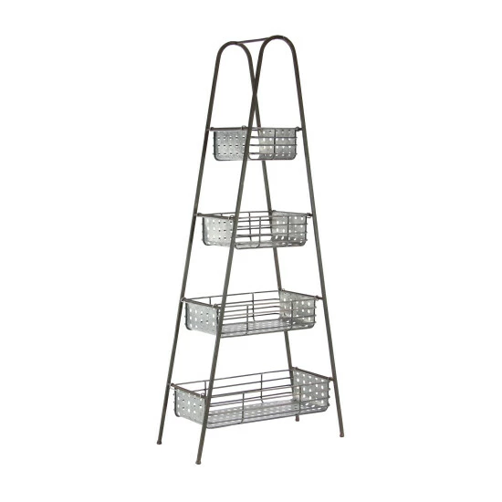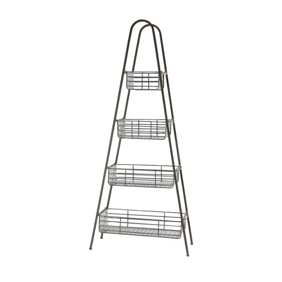 - A storage rack highlighting wedge-shaped frame with 4 basket-inspired containers