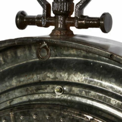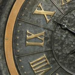 Time is a universal constant which you do not have control of. However, this traditional style black and bronze metal oversized pocket watch wall clock can bring time to a standstill when you admire it in your beautiful traditional inspired home. This unique piece features a round design casted from metal with a galvanized texture and black and bronze finish. The hours and minute markers are embossed on the metal giving it a 3-dimensional feel. The hour and minute hands feature a unique quill design for a complete vintage feel. The top part of this clock features an adjustment knob detail like that of an actual pocket watch. This elegant clock would definitely make an excellent focal point for your walls paired with some accent tables, and other decors of the same genre in your traditional inspired living space. Runs on one AA battery (not included). This item ships in one carton. Roman numerals for the hour markers. The clock mechanism runs silent. Easily hanging using hanging hardware on the back. Suitable for indoor use only. Farmhouse-themed style.