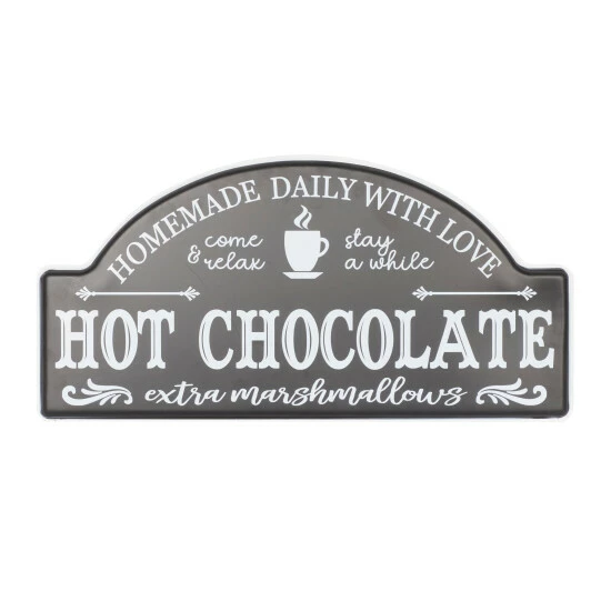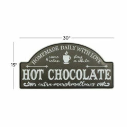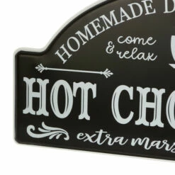 - Who doesn’t love chocolate? Say it loud with this message wall décor, the message, “Homemade daily with Love”, ” Come & relax, stay awhile”, “Hot Chocolate with extra marshmallows”, on a black background with white lettering