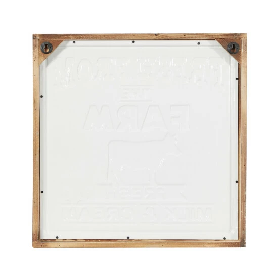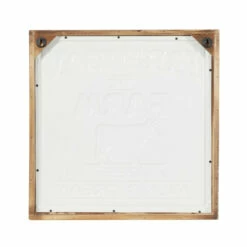 - The wood frame has a brown finish, while black text stands out from the white background.