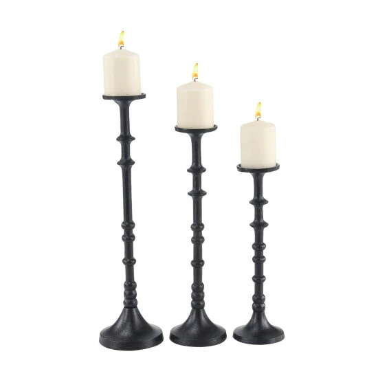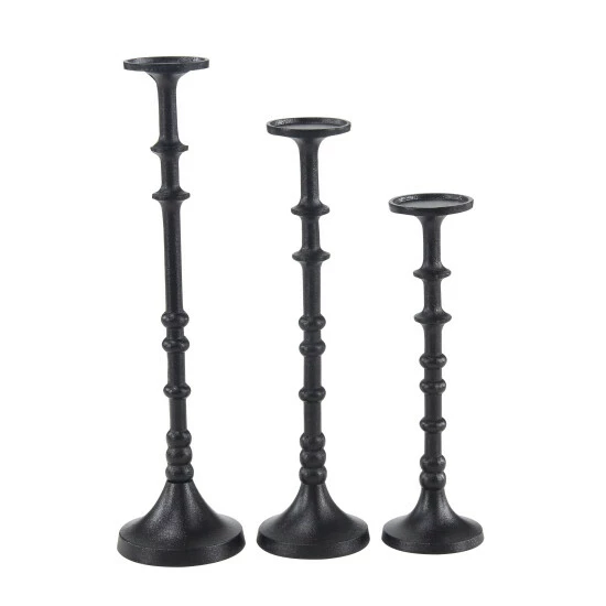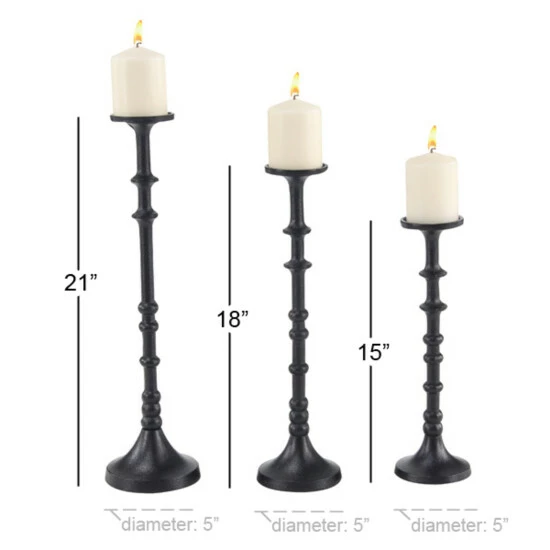 - These tall iron candle holders come in various heights and feature a classic black pillar design